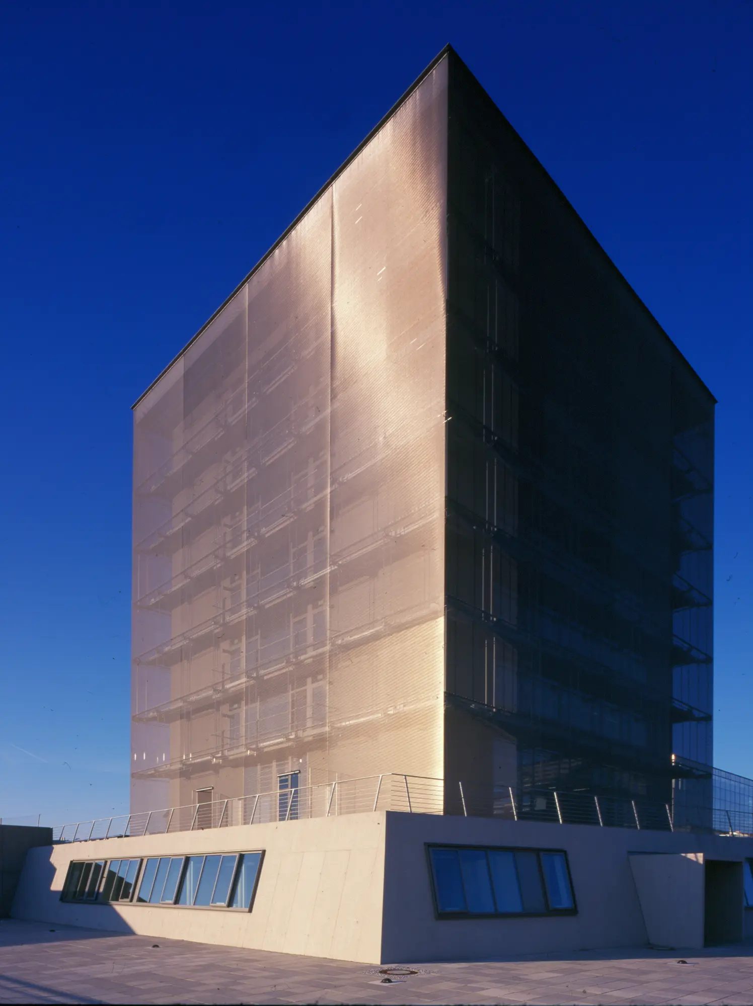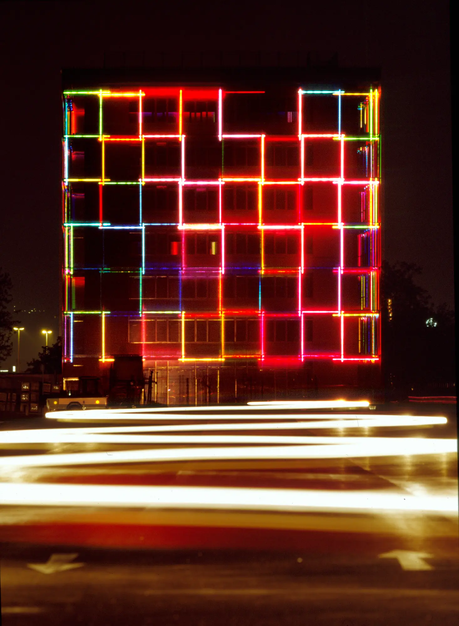 Nicht die physische Gestalt des Gebäudes steht im Vordergrund, sondern die Verwandlung seiner Erscheinung durch Licht. Das Spiel von Struktur, Farbe und Bewegung macht den Baukörper zur medialen Oberfläche, zur Schnittstelle zwischen analogem Raum und digitaler Kommunikation.