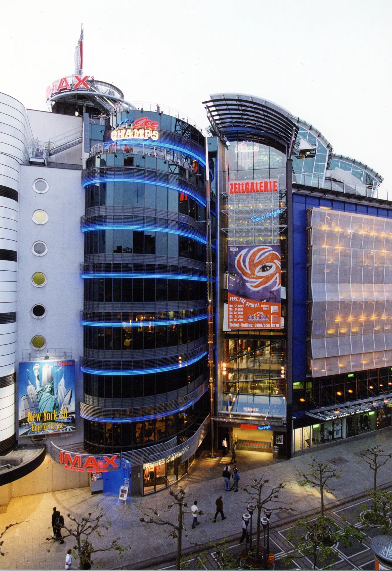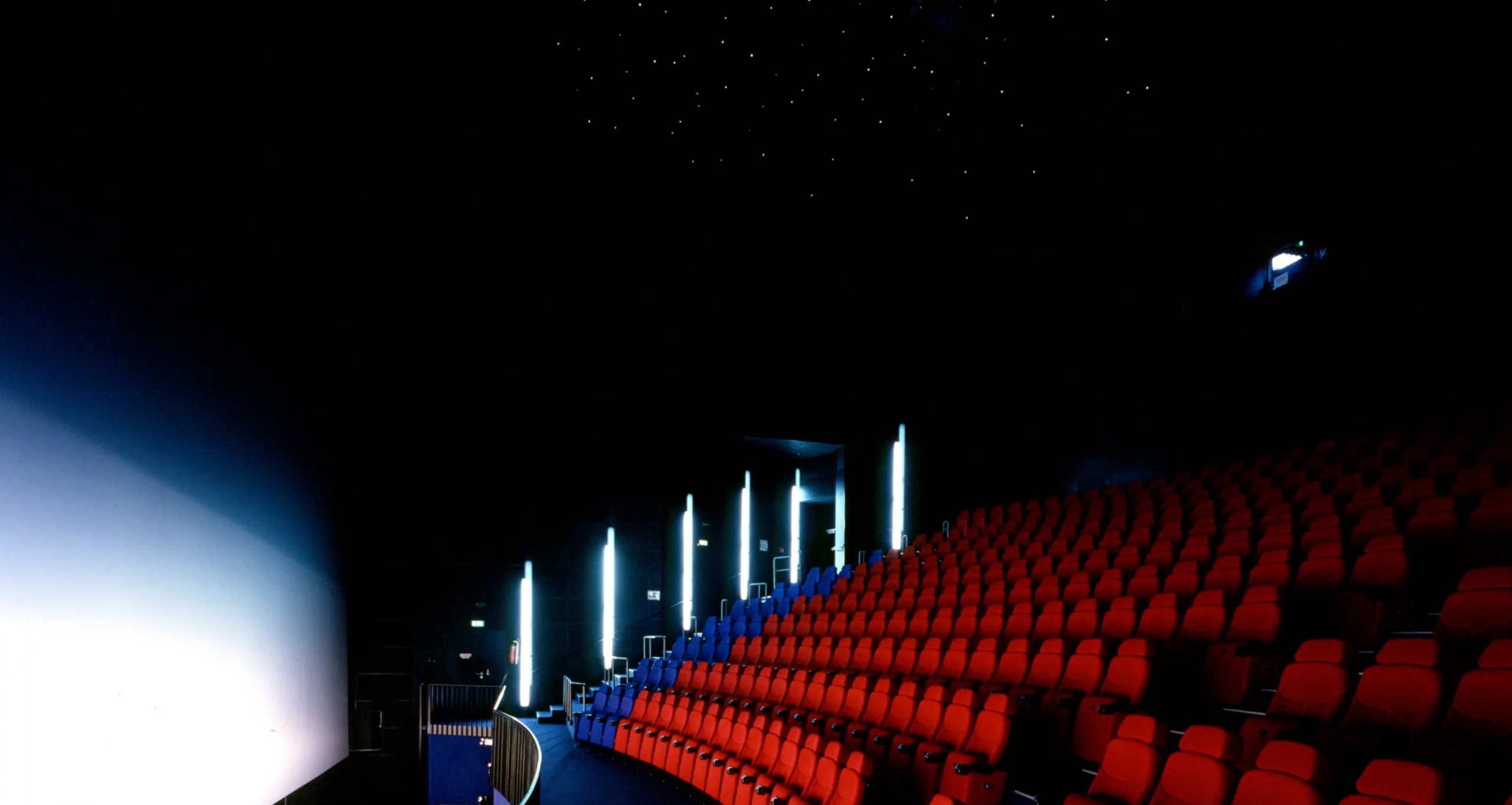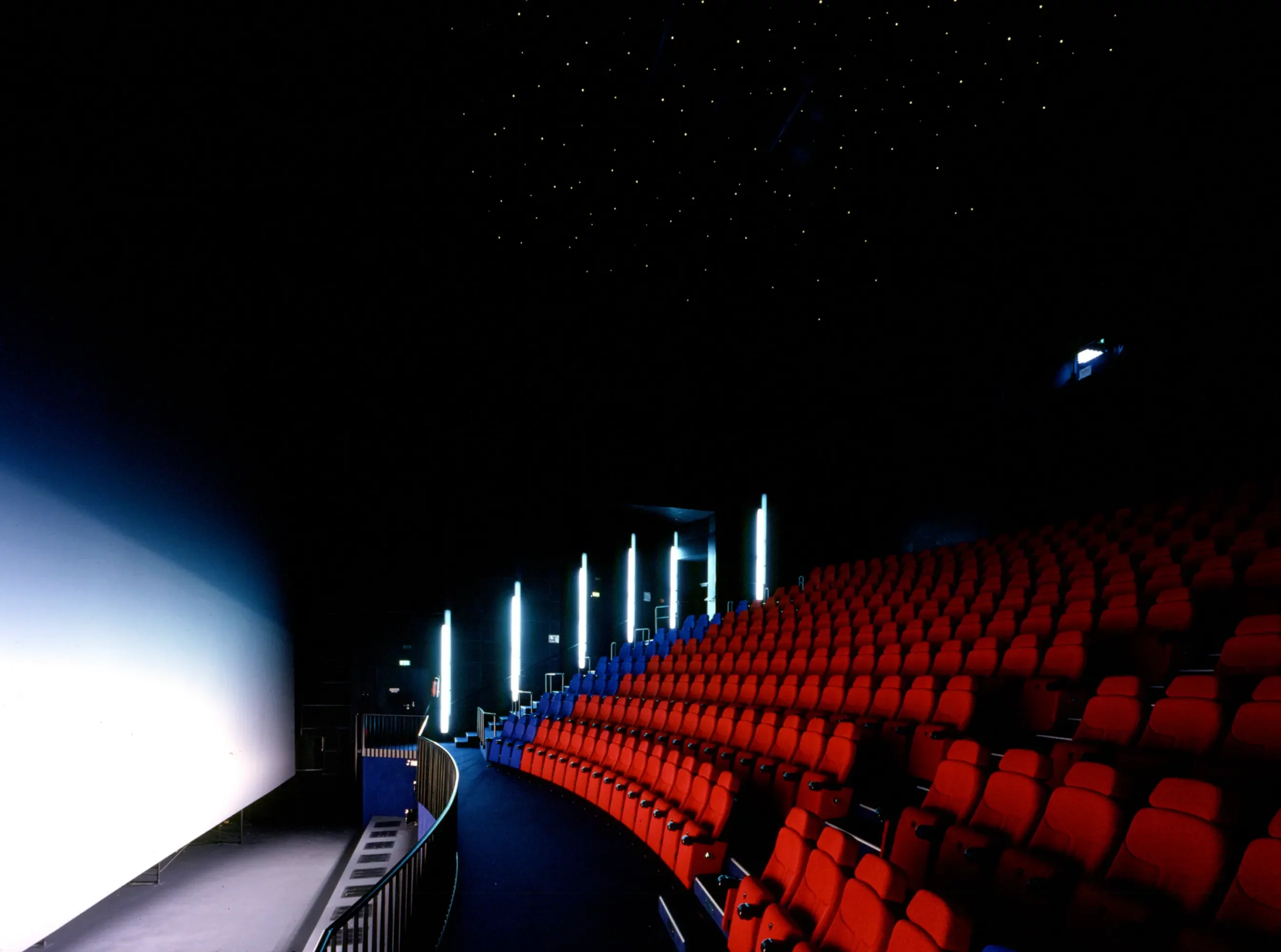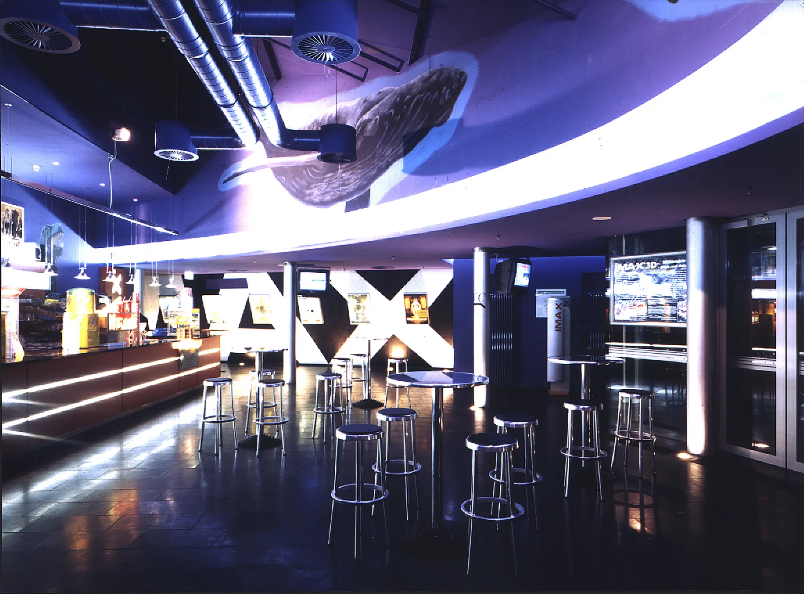 Fast zehn Jahre später konnte die Idee doch noch realisiert werden – als IMAX 3D-Kino unter einem silbernen, fischbauchähnlichen Dach. Die tragende Konstruktion überspannt 23 Meter und lagert auf einer durchgehenden Wandstruktur. Die äußeren Wände hängen an gebogenen Hauptträgern – eine kompakte Lösung, die dem Ort eine neue kulturelle Präsenz verleiht.