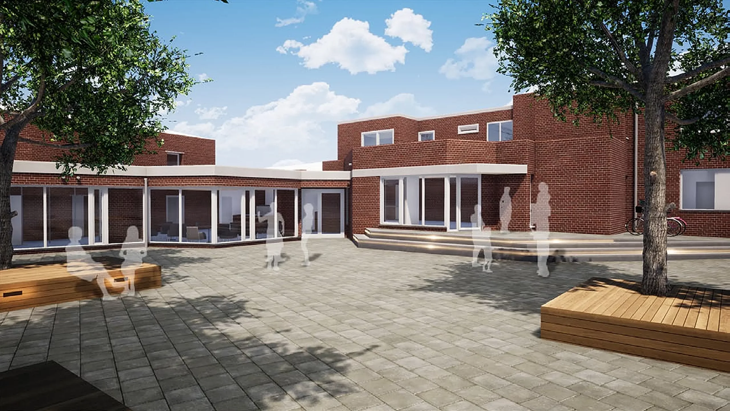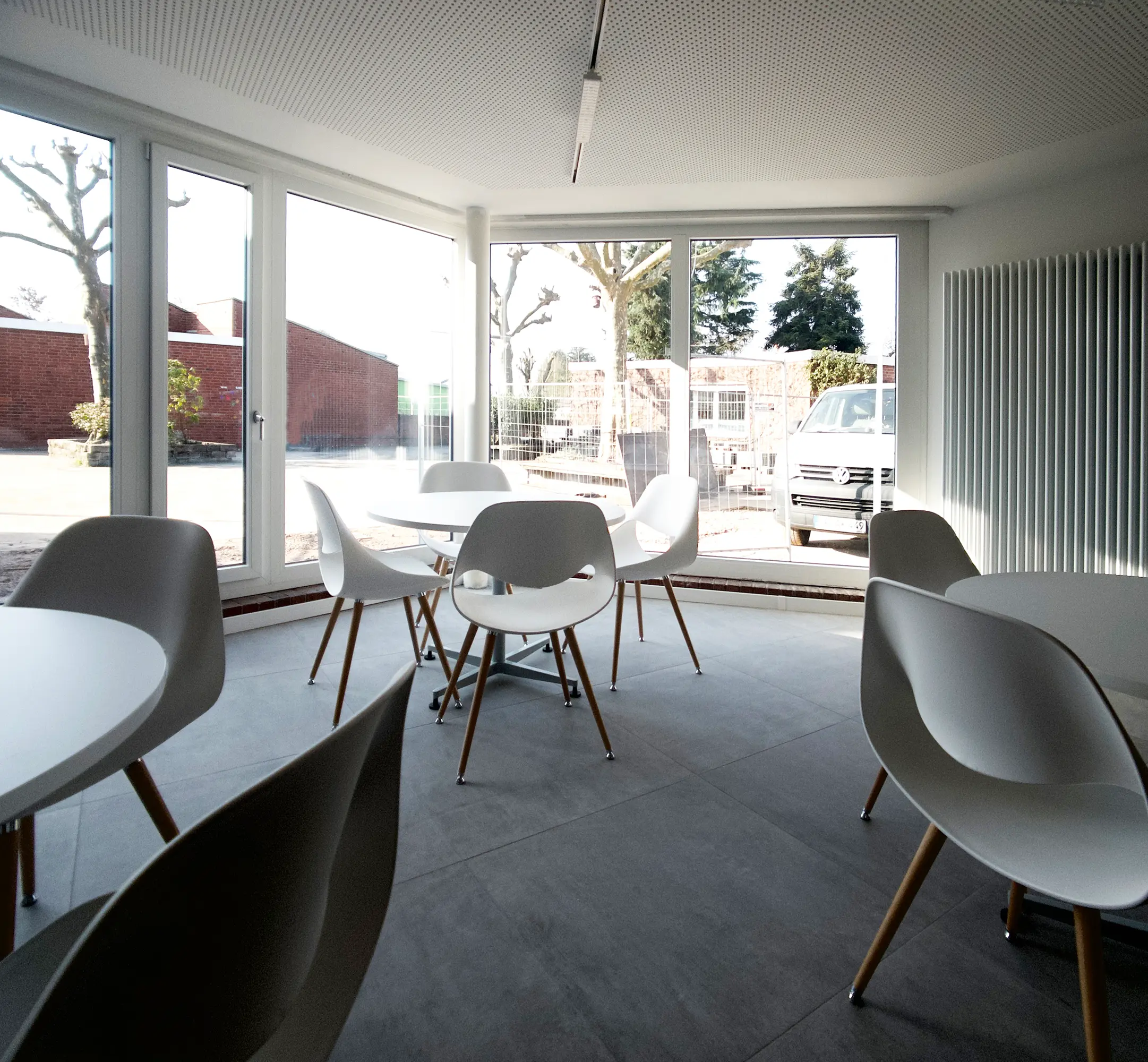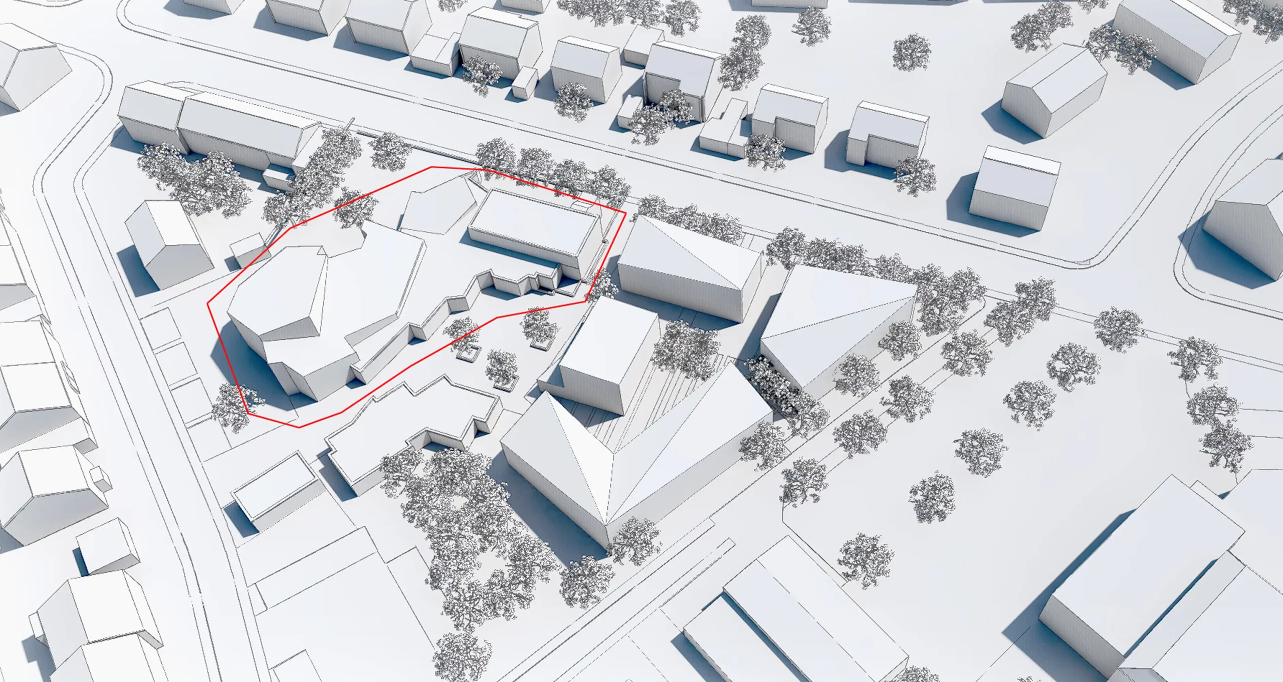 Das Gebäudeensemble aus dem Jahr 1974 – bestehend aus Gemeindezentrum, Pfarrhaus und Kindergarten – gruppiert sich um einen geschützten Innenhof. Durch die Umnutzung entstand ein zeitgemäßer Ort für Begegnung, Bildung und Gemeindeleben.