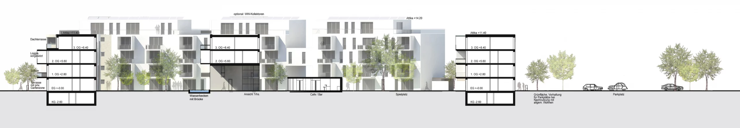 Das Preisgericht hob die gelungene Durchwegung, die Nutzungsmischung und die überzeugende architektonische Umsetzung hervor – insbesondere die Flexibilität, Differenziertheit und Orientierung des Wohnraums an den Bedürfnissen einer gemischten Bewohnerschaft.