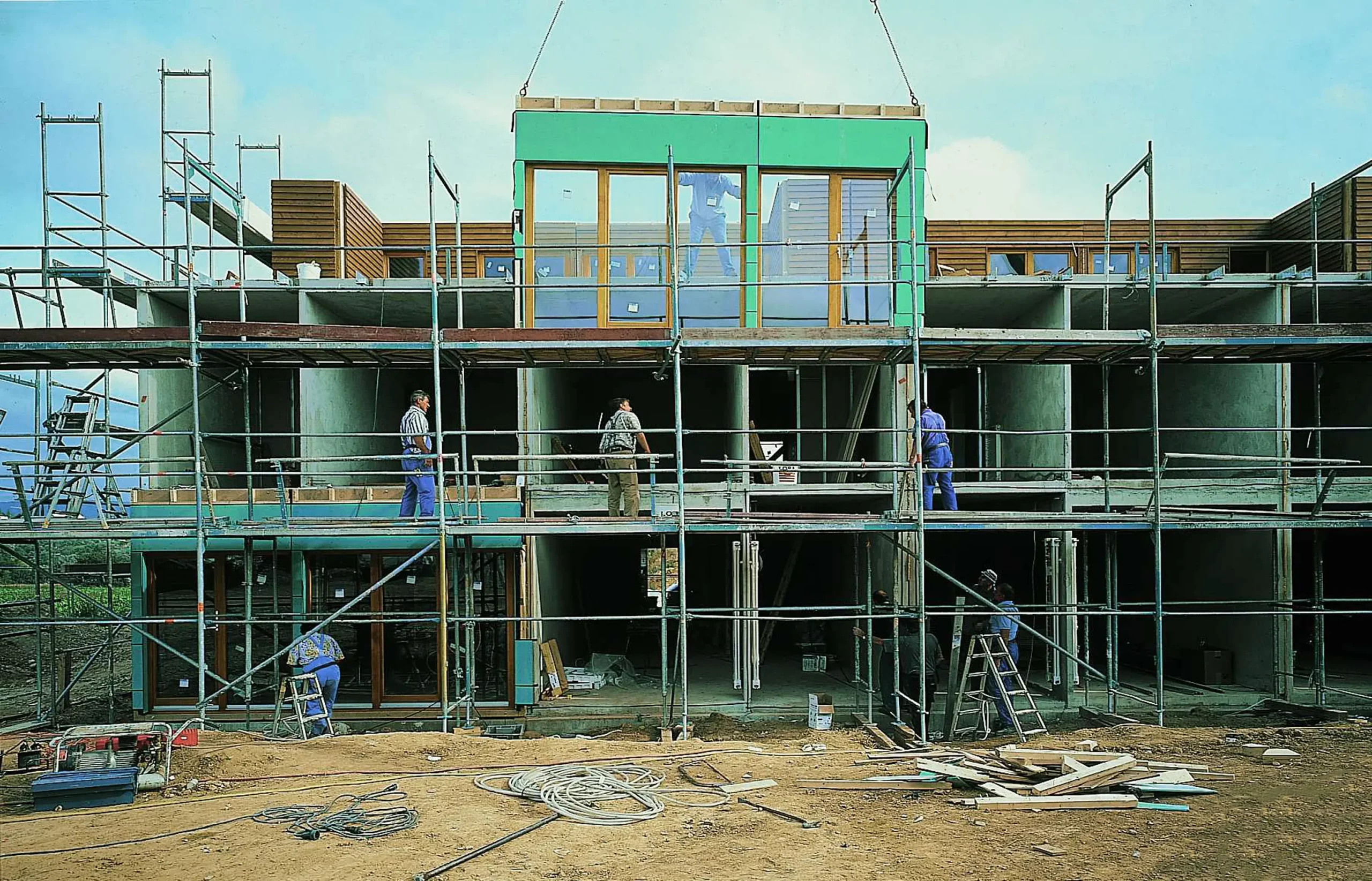 – 15 zweigeschossige Häuser mit zurückgesetztem Dachgeschoss, ohne Keller