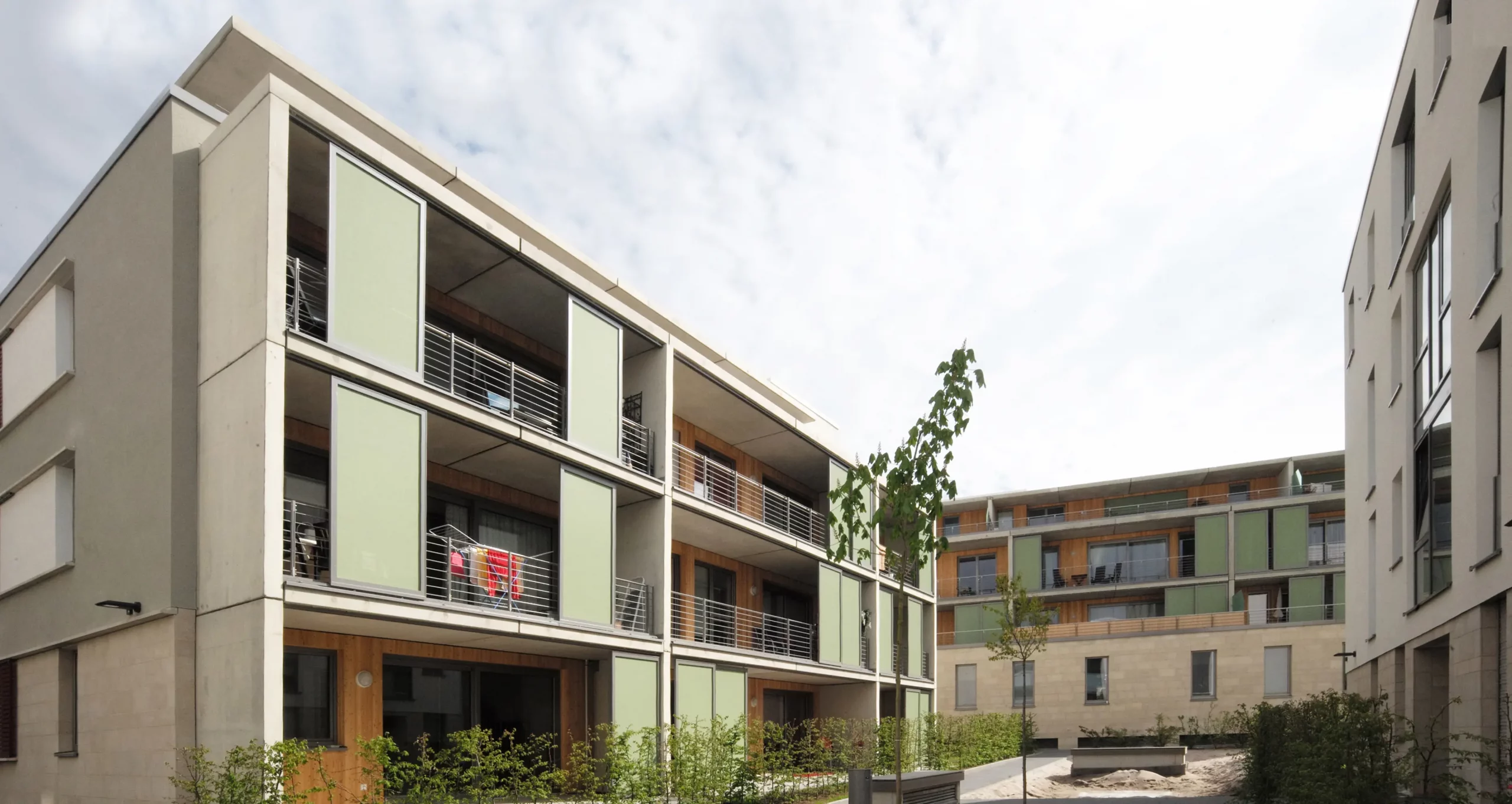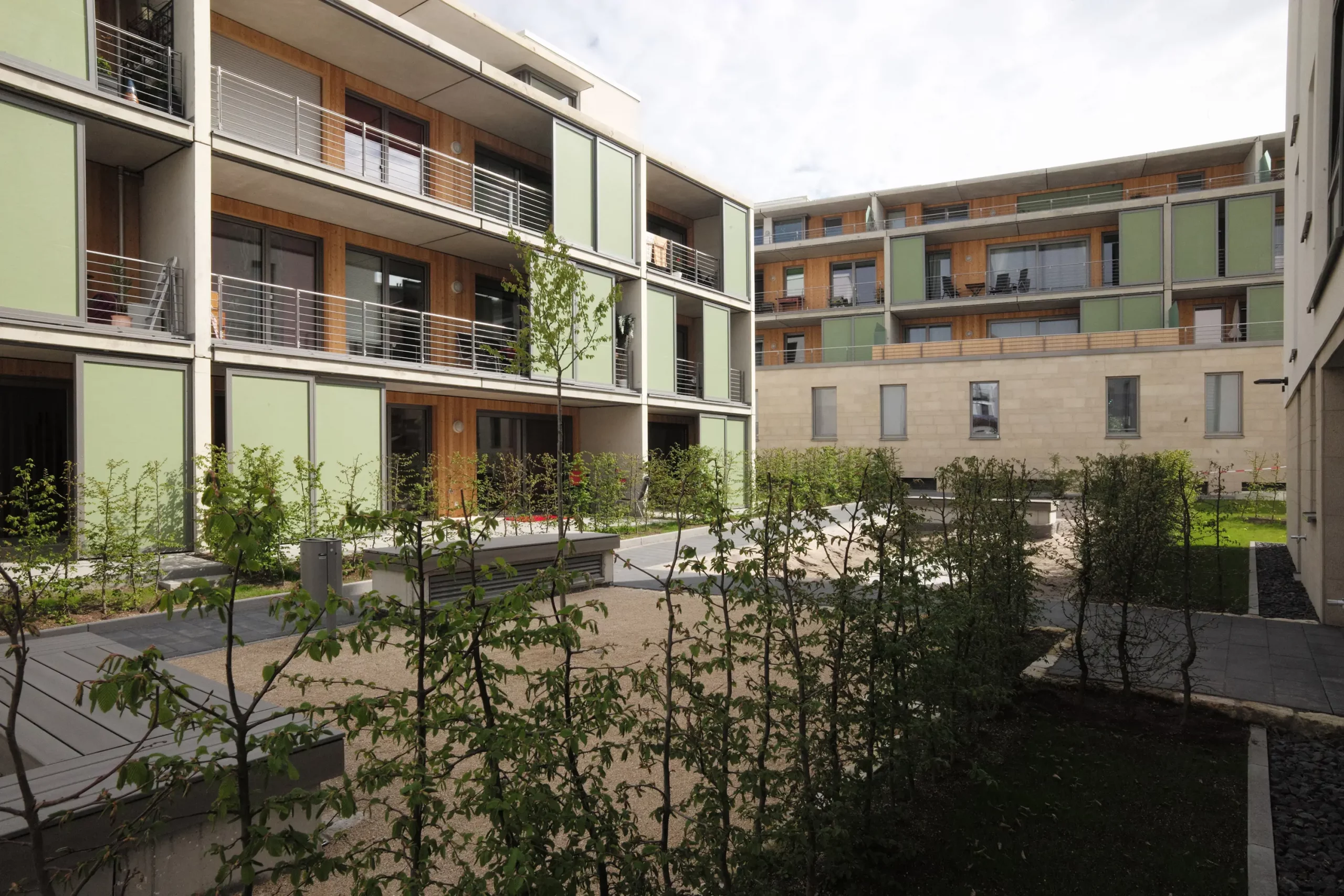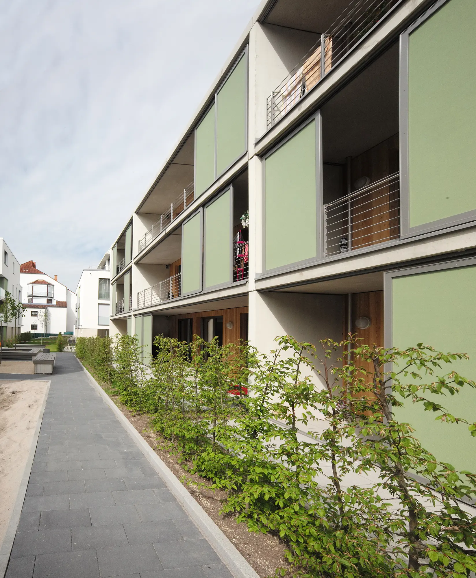 Insgesamt entstanden 54 barrierefreie Miet- und Eigentumswohnungen mit rund 4.130 m² Wohnfläche – darunter vier exklusive Penthäuser auf den Stadtvillen. Sämtliche Wohneinheiten erfüllen den Passivhausstandard und bieten höchsten energetischen Komfort.