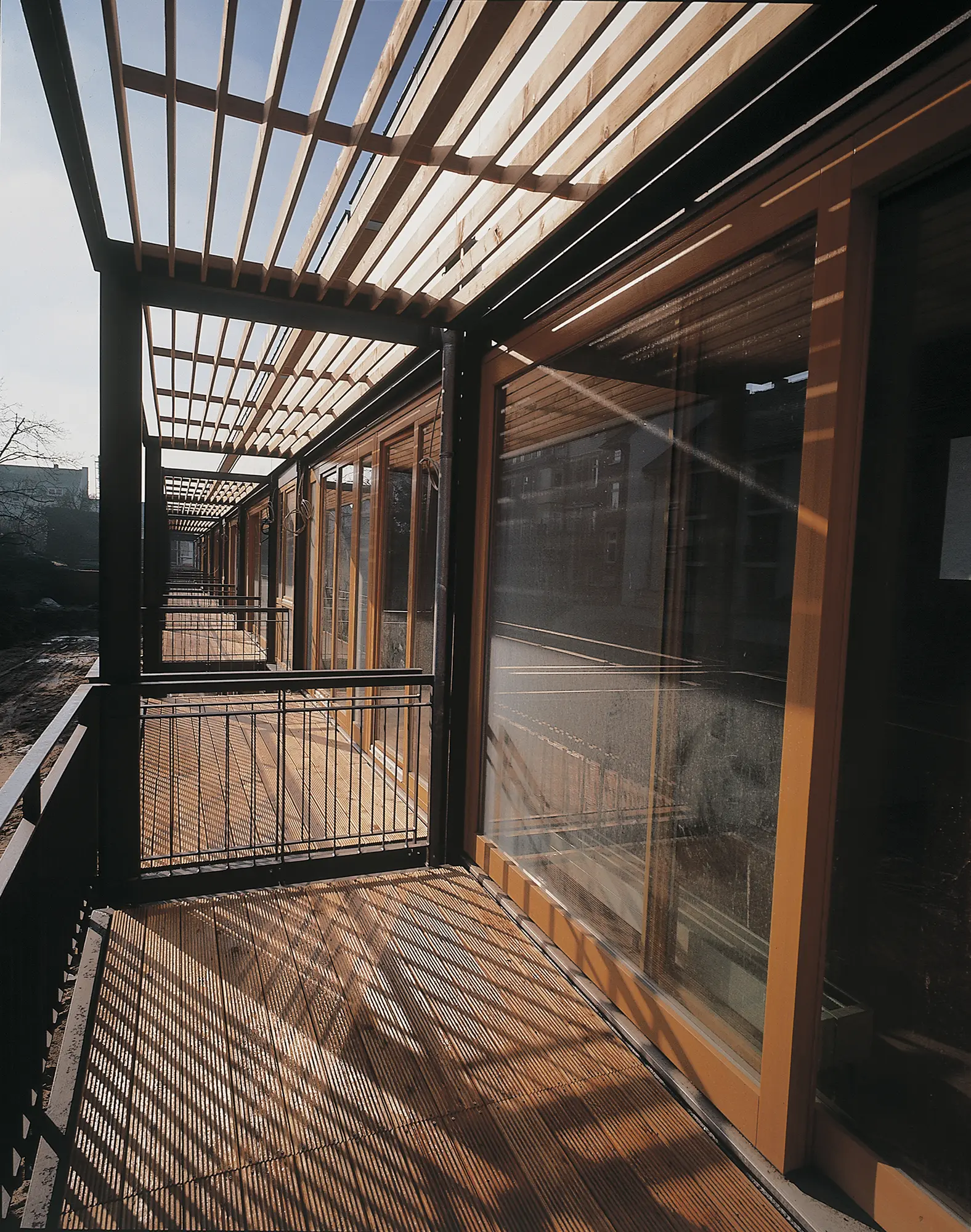 Je drei bis sechs Wohnungen teilen sich ein Treppenhaus. Insgesamt wurden 60 Wohnungen realisiert – von kompakten 1-Zimmer-Apartments bis zu großzügigen 6-Zimmer-Wohnungen, darunter auch Maisonetteeinheiten. Alle Wohnungen sind mit privaten Freibereichen ausgestattet.