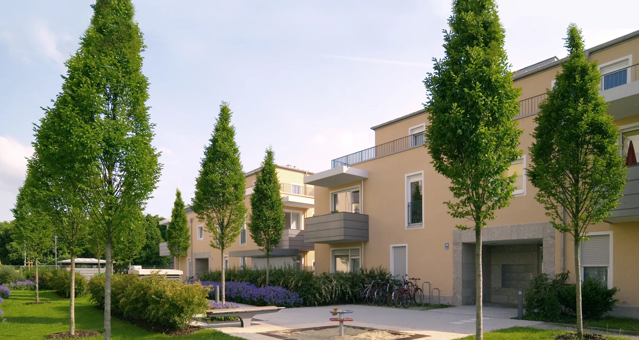Die 1,5- bis 5-Zimmer-Wohnungen bieten Wohnflächen zwischen 45 m² und 115 m², überwiegend im kompakten Bereich. Alle Wohnungen verfügen über Balkone oder Terrassen sowie angenehme Raumhöhen bis 2,85 m. Parkettböden gehören zur Grundausstattung.